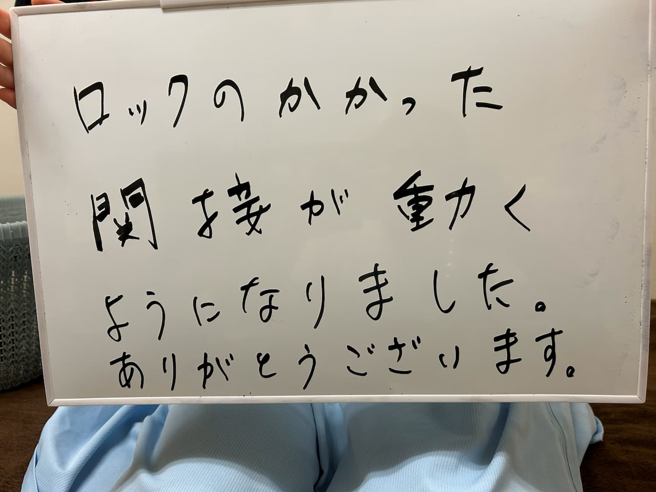 「まるでロックがかかっていたみたいだった関節が、嘘みたいにスムーズに動くようになりました!本当にありがとうございます。」
